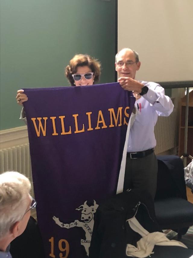 Eighteen classmates and friends of ‘71 started the weekend early by attending a Thursday night presentation sponsored by our ‘71 Public Forum entitled “Free Speech and Intolerance.” A huge thank you to Jack Sands for his continued effort in making the ‘71 Public Forum a thought-provoking and well attended event on the Williams campus. At least 100 students attended as wll as a number of townspeople, faculty and locals alums. Our class was out in force with the following: John and Karen Ackroff, Sue Brown and me, Rod Brown, Dan and Jody Hunt, Dave and Audrey Kubie, Steve Latham, Ken Richardson, Jack and Arria Sands, Nick and Ann Tortorello, Mary and John Untereker (all the way from Houston), and Peter and Kathy Wege. BTW – earlier in the day, we spotted Gene Bauer, along with Ellen Shortell, trying to make a downhill put on the 6th hole at Taconic.