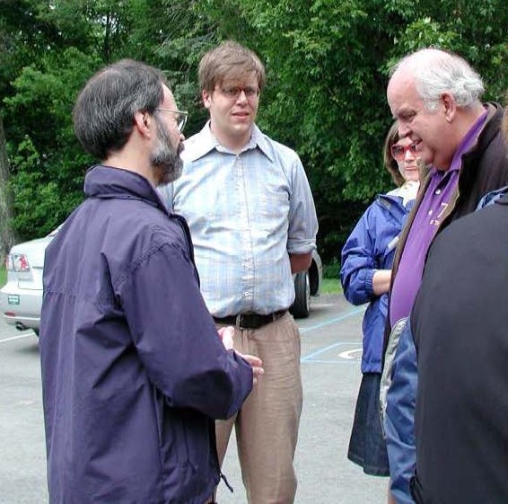 | From left to right: Craig, Debbie Stein, Ben Thompson ’01, Elizabeth Lindeke, Jeff and Adam Stein, Karen and John Ackroff, outside Agard House at our 35th Reunion in 2006. | Jeff Stein, Bill Lindeke ’01, and Craig, June 2006. | Elizabeth and Craig with Rich Casden, June 2006. |